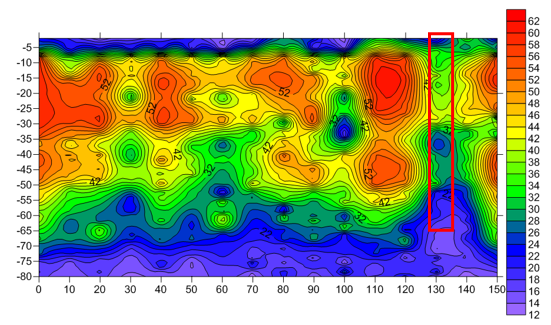 And the electrical parameters of the abnormal area in the resistivity distribution map are analyzed to carry out geological interpretation and determine the specific parameters such as the location and distribution characteristics of leakage in the rock and soil.